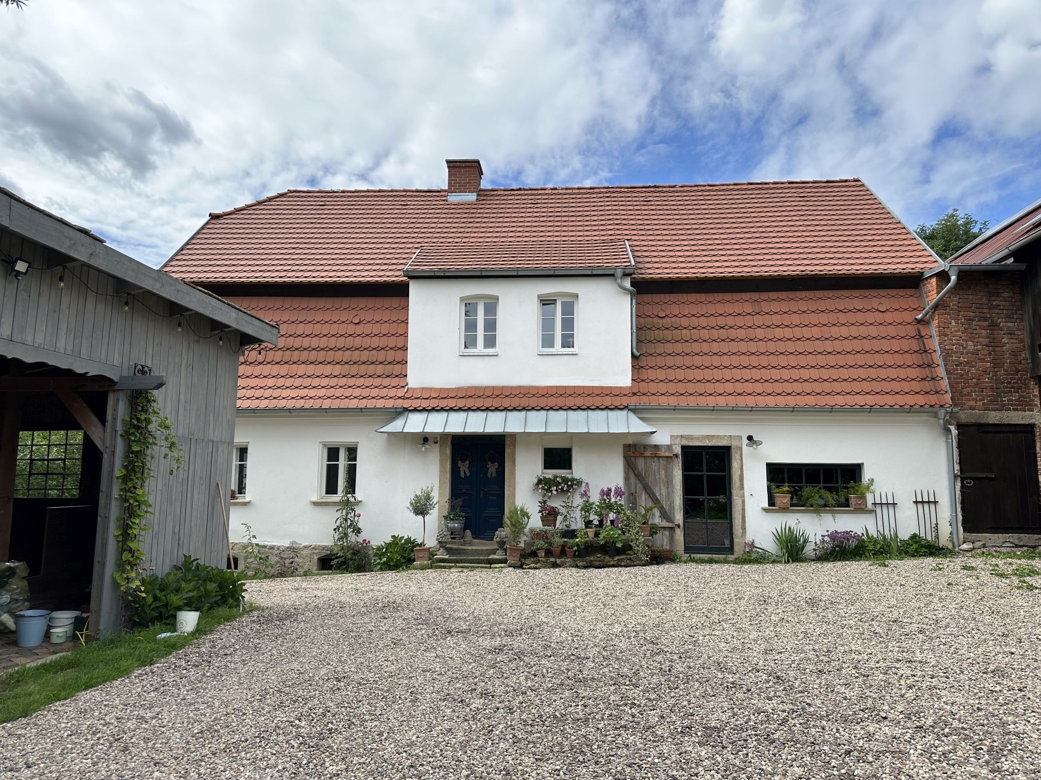 Historia domu w Starej Łomnicy (Alt Lomnitz) 110 nie jest znana, ale najprawdopodobniej powstał pod koniec XVIII wieku lub w pierwszej tercji XIX wieku. Podczas czyszczenia jednego z żeliwnych okien stodoły właściciele odnaleźli liczbę 1785, która jest być może datą powstania gospodarstwa. Jest to jeden z trzech istniejących we wsi budynków o mansardowym dachu z niewielkim naczółkiem. Obiekt charakteryzuje mnogość detali architektonicznych niespotykanych w innych znajdujących się we wsi budynkach, a jego bryła jest podobna do położonego o kilkaset metrów dalej Dworu Górnego, wybudowanego w XVI wieku i znajdującego się obecnie w stanie ruiny. Podobieństwa wykazują także łukowe okna z ozdobnymi szprosami, poddanymi renowacji i z częściowo zachowanymi szybami prawdopodobnie o XIX-wiecznym pochodzeniu.